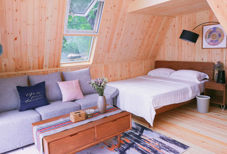 巴塘院子采用的是独栋别墅的设计,分为一号院子和二号院子,每个院子各有三栋别墅,每栋别墅规格大小都是一样的。别墅采用的是双层loft复式设计,一层面积约23㎡,包含卧室、客厅、厨房、卫生间和外阳台部分,二层是一个8㎡独立的卧室,能够满足3-4人的住宿需要。