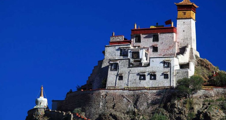 雍布拉康距泽当县城8公里处,雍布拉康凸起如碉堡式的建筑,矗立在扎西次日的山顶上,显得气势不凡。始建于公元前100年,是西藏的第一座宫殿,也是藏族人心中的圣殿,是转经的必到之处。因为雍布拉康小山的形状极象母鹿的后腿,“雍布”即为“母鹿”之意。