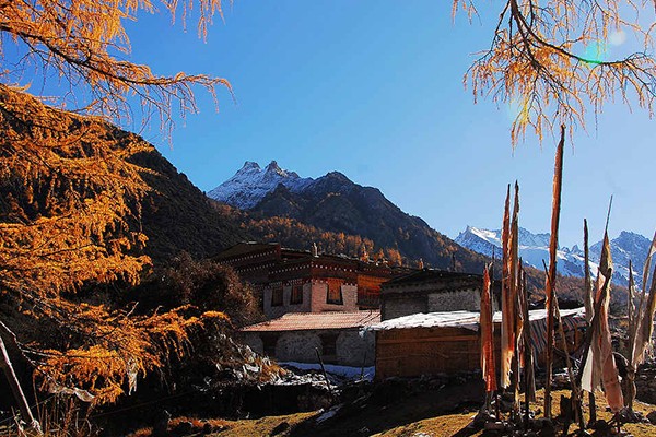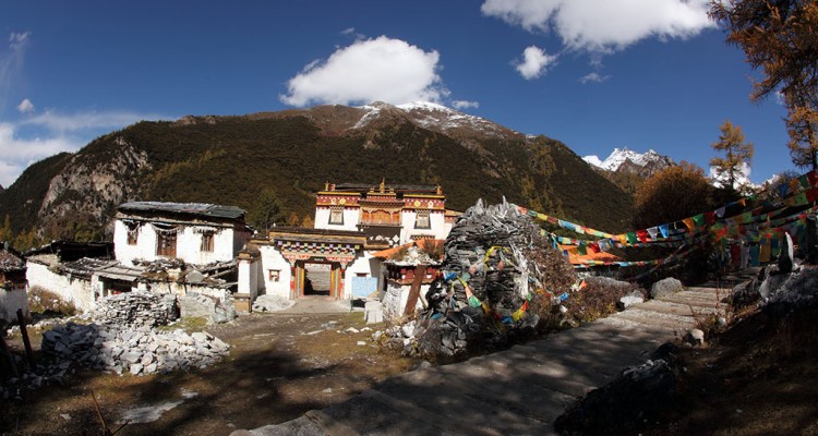 冲古寺:意为填湖造寺,海拔3900米,始建于元朝,至今有800多年,在之前的寺庙在对面的山坡,先为黄教,归贡噶岭寺管。冲古寺曾两次火灾,现在寺院只有断垣残墙了。 一九二八年,洛克先生来到日松贡布(三牯主)进行考察时,曾在该寺住了三天,洛克先生透过寺院的小窗户,沿着峡谷远眺月亮下宁静,祥和的亚丁村,这就是希尔顿笔下香格里拉中美丽的蓝月山谷的原型。