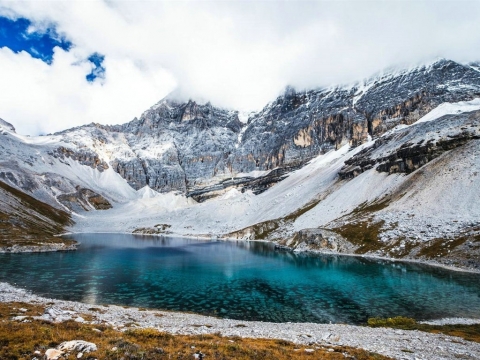稻城亚丁夏诺多吉为三怙主雪山的东峰,和仙乃日、央迈勇并称三怙主雪山,海拔5958米,是稻城亚丁旅游的重要景点.