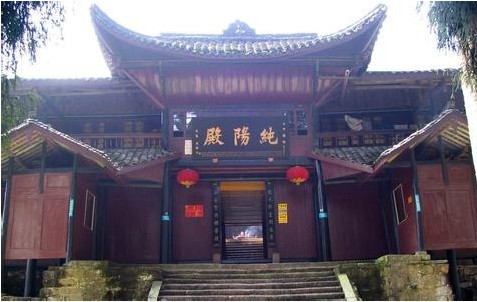 峨眉山纯阳殿内供奉八仙之一吕洞宾仙像,纯阳殿作为道教宫观时,有吕纯阳立、坐、卧三种不同姿态的塑像。后道士离观,僧人居之,增修新殿及静室香厨供奉大士、弥勒,遂成为佛教寺院。清代初年,僧人又几度扩建佛堂及客舍僧寮。