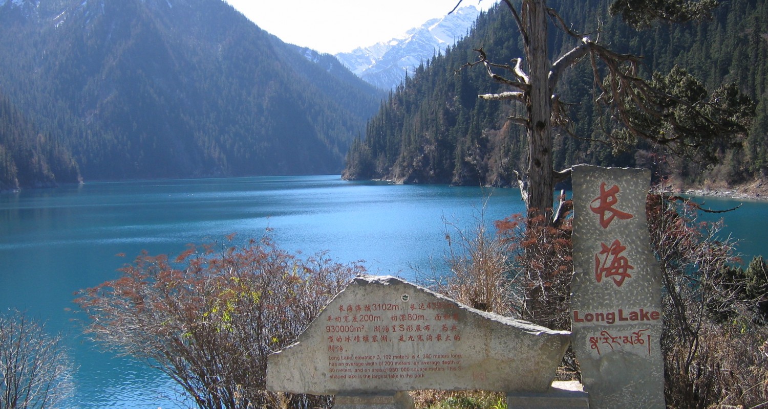 长海位于九寨沟则查洼风景线,海拔3060米,长约5公里,宽约600余米,水深45米,最深处达百余米,呈S型分布,面积93万平方米,是九寨沟所有景点中海拔最高、湖面最宽的海子长海是远古冰川的儿子,它没有出水口,靠冰碛物阻塞成湖,长海的南边冰川雪峰上的积雪是长海的水源,夏秋暴雨,水不溢堤,冬春久旱,亦不干涸。藏胞赞美它是;装不满、漏不干的宝葫芦。长海呈墨蓝色,夏季四周山峦叠翠,绿水幽深,使湖水显得格外澄清。水面常有长颈水鸭子栖息,自由翱翔,上下翻飞,好像与游人逗趣。山峰终年积雪,春秋时节,水中呈现琉璃世界,倒映出百花簇拥的雪山。隆冬时节,长海冰层厚达60厘米,是冰上运动的理想场所。