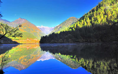 则查洼沟层峦叠嶂,山势挺拔,眺望远方,皑皑雪峰,尽收眼底,艳阳之下冰川呈;型谷,使人目眩。 长海沿岸山峦迭彩,绿树幽深。隆冬季节,冰冻雪封,一片银白,冰厚可达2尺;五彩池水上半部呈碧蓝色,下半部则呈橙红色;季节海的水则随干旱季节而时盈时涸。长海其因景点密度少,所以游人相对较少,其实,这也是您慢慢品位天堂九寨的好地方,沿公路缓缓步行,自能体会到游人稀少自然环境原始的另类享受。