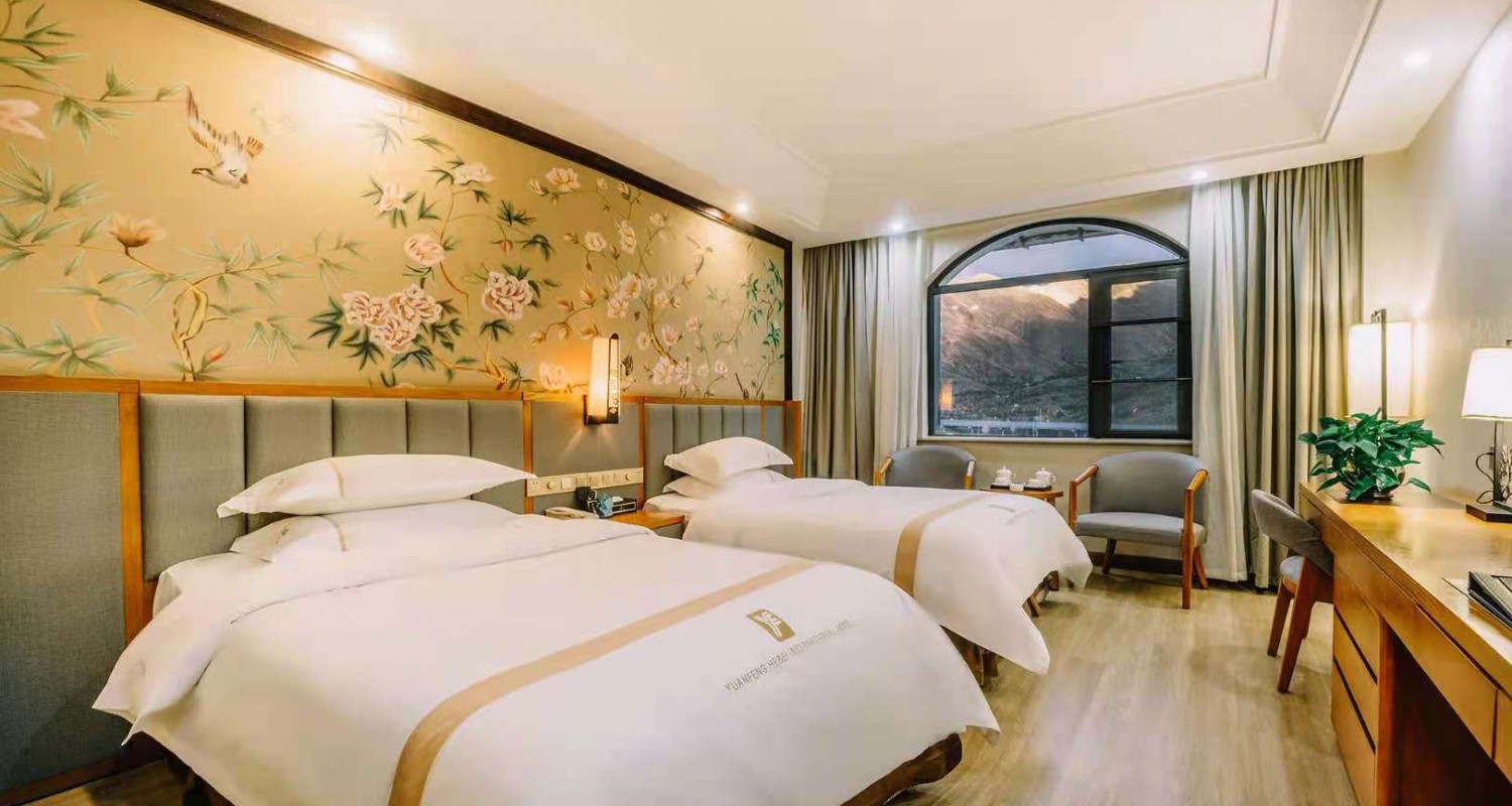 这是一家集高中端住宿、川味私房餐饮、品茗棋牌休闲、商务会议中心于一体的特色国际饭店,高端典雅的设计,使用面积9600平方米,共6层。1层餐厅提供中西自助早餐、精美的川味私房大餐,可容纳200人同时就餐;2层至5层设有多种房型客房百余间,且分别在2层和5层各有一个会议厅,可满足30至180人商务会议、小团体办公需求;6层为茶餐厅,内置古色古香的功夫茶室、西式咖啡卡座、高端棋牌包间,提供各类饮品、茶点以及西式简餐等。