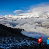 这片天上云卷云舒,金光乍泄,而子梅垭口上的风则毫无章法,来时的路又崎岖坎坷,大概心不够虔诚的人也许能被这暴风吹得心生退意。垭口和山峰仿佛是最默契的搭档——前者无时无刻不张狂,却又十分静默地守护着身后那片高傲的白色冰山;后者却似昙花,似神佛,让苍茫的垭口增加了越来越多信仰的脚印。