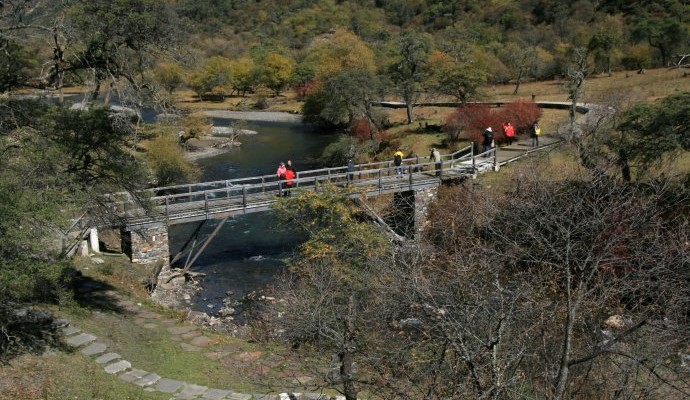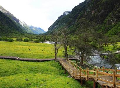 人参果坪位于双桥沟十公里处,它是一处十五公顷的大草滩,妩媚坦荡。它的得名是因为在这片草甸下面生长着一种名贵的蔷薇科地茎植物,学名叫鹅绒委陵菜;,嘉绒藏族称之为人参果。人参果皮黑肉红,味道甘甜,既可以食用,也可以入药,它的药用价值与中药里面的人参相同,具有益气补血、滋阴壮阳的功效。这里还有一个神奇之处,这数百亩草甸,其中只有20多亩草甸下面生长人参果。