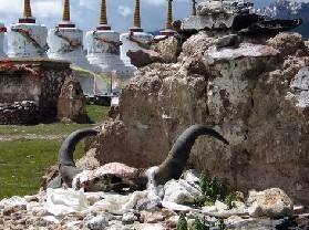 那唐寺曾遭破坏,1987年在废墟上修建了三个殿堂,殿堂内保存了当年七块十六罗汉的石雕,第八任住持巨屯·门朗措成30多岁时在石头上留下的一双脚印和先后搜集到的《甘珠尔》、《丹珠尔》印经板8800块等文物。