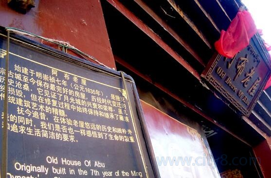阿布老屋建于明崇祯七年(公元1635年),已有370多年的历史,目前是云南香格里拉县独克宗古城的受保护建筑。老屋的主人77岁的藏族老汉阿布,身材高大健壮,汉名叫松柏良。他的祖上很富有,上个世纪五十年代,他家被赶出老屋,老屋收归国有。公社时代老屋曾作为公社食堂,文革时老屋当作造反派办公室。“文革”结束后,随着党的民族政策的落实,这座记录着香格里拉沧桑的古宅也在八十年代返还给松家后人阿布。