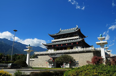 文献楼位于大理古城南门外1公里,素有古城第一门之称,是大理古城的标志性建筑。始建于清康熙年间。楼额悬挂云南提督偏图于康熙四十年(公元1701年)所题的“文献名邦”匾额,故名文献楼。“文南名邦”匾两侧有清代邑人周仁所写的长联:“朔汉唐以还,张叔传经,杜公讲学,硕彦通儒代有人,莫让文献遗风暗洧新潮流外;登楼台而望,鹤桥小路,鹫岭夕阳,熙来攘往咸安业,但愿妙香古国常驻于平世界中”。