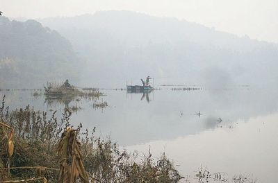 百丈湖湖面200万平方米,常年蓄水2000万立方米,湖岸蜿蜒曲折,小岛坐落其间,山光水色,淡雅宁静。