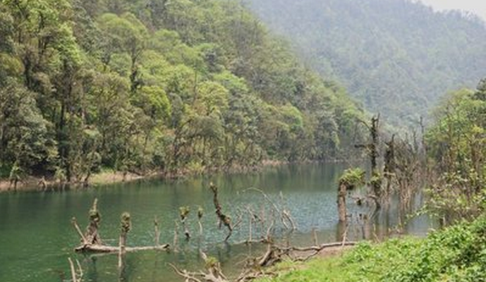 国家级森林公园龙苍沟在荥经县东南30公里处,总面积7573.8公顷。山势柔和舒缓,连绵起伏的山岭形成圆润舒展的曲线。公园内有人参沟、龙苍沟、马草河水系,形成丰富的清流、跌水、深潭、飞瀑景观,尤以天生桥瀑布最为有名。冬季鸳鸯瀑布银幔玉帘,如童话世界。植被类型多样、垂直带谱完整,植物景观丰富。有常绿阔叶林,常绿与落叶阔叶混交林、针阔混交林、亚高山暗针叶林、人工林、珙桐林、杜鹃林、孤立林和枯木景观。共有木本植物77科216属450种,可利用真菌资源14种,特别是长羊肚菌、四川灵芝、天麻、木耳等有较高食用和药用价值。茂密的森林中有脊椎动物7目18科40余种,常见的有獐、林麝、野猪、小熊猫、岩羊、草兔、红腹角雉、锦鸡等,并时有大熊猫、扭角羚等珍稀保护动物出现。云行雾绕和雪景是主要的天象景观。冬季的冰瀑、冰潭、雪树冰花也自成一景。公园四周峰峦千叠,远眺瓦屋横亘,可观荥经全貌。太湖寺、严道古城遗址、开善寺、红军遗迹等人文景观与森林公园交相晖映。