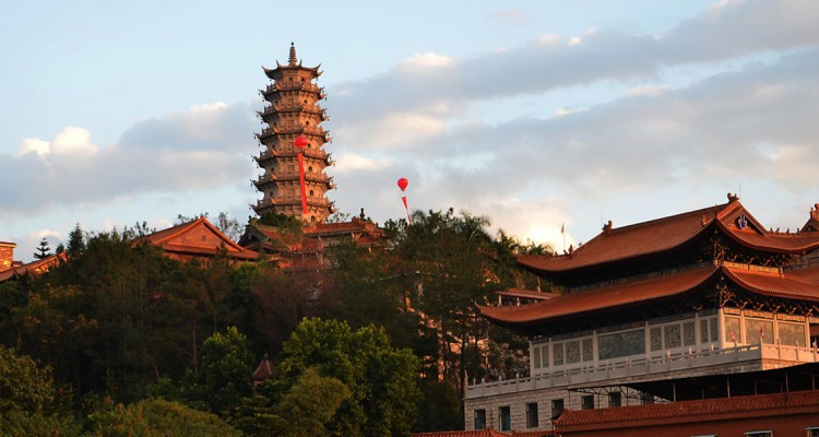 四川省千佛塔位于都江堰市北5公里灵岩山灵岩寺左侧。此塔系唐开元年间(713-741),印度僧人阿世多尊者重建灵岩寺时修建,为石雕堵坡式实心塔,通高3米,底径约7.5米,下设须弥式塔基,上置覆钵形塔身,共13层,下大上小,各层雕满结枷跌坐佛像,故称千佛塔。下三层佛像刻有莲坐项光,以上各层依次缩小。像高数厘米,精雕细刻,衣纹清晰,神态慈祥,总共约800余尊。塔顶饰莲花瓣两层,上置莲座,置铁铸释迹牟尼佛座像一尊。此像与石雕像风格不同,疑为后配。千佛塔在宋代很有名,诗人范成大有“五桥今日新知路,千佛当年旧缀名”之句。造型奇特,雕琢精细,为蜀中鲜见。