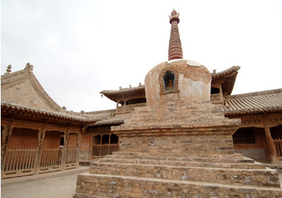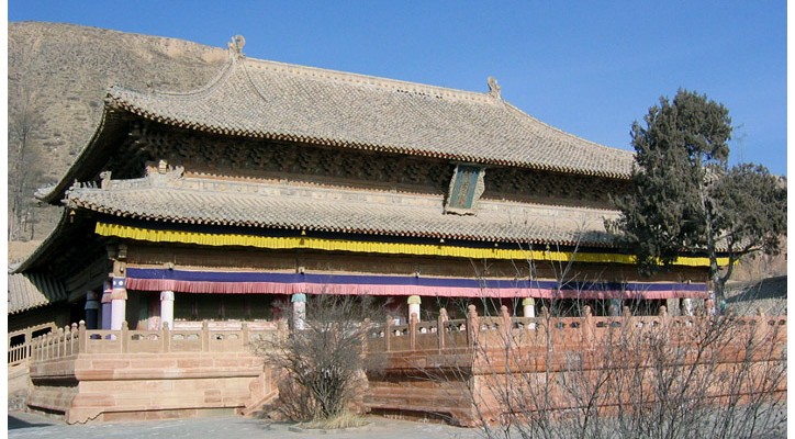 隆国殿在瞿昙寺内。建于明宣德二年(1427年)。俗称“大殿”,和瞿昙寺殿、宝光殿在同一条中轴线上,是瞿昙寺整个建筑中最富丽堂皇的一座殿宇,占地面积912平方米,屹立在全寺最高处一个宽大的台基上。为重檐庑殿式建筑,雄伟壮观。相传翟昙寺创始人三罗喇嘛当年来到瞿昙寺隆国殿现址,见有清泉一池,饮水时忘了拐杖,回头找拐杖时,已经长在泉边,便认定这是一块宝地,不再走了。据说拐杖长成一棵树,就是现在隆国殿内的“珍珠树”,那清泉就是隆国殿内的瞿昙池。建筑工匠巧妙地利用地形特征,在瞿昙池上建起一座雄伟壮丽的隆国殿,在殿中泉池上又盖了泉神堂,堂高9尺1寸,带座4层。将一池清泉囊括在一座宏大的殿宇中,可说是古代建筑史上的奇迹。殿内文物甚多,有嵌镶着金龙牡丹木雕的皇帝万岁牌。有重达1800斤的金光大菩萨佛像,还有清嘉庆年间(1796—1820)的青铜磬和造型十分优美的象背鼓及众多的匾额。