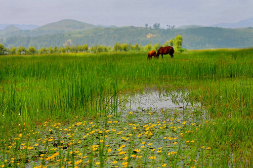 草海是去泸沽湖必玩的景点之一。草海在泸沽湖的东南面,由于长年的泥沙淤积,湖水较浅,因此生长有茂密的芦苇。草海全长约七千米,平均宽约八百米,面积九千余亩,属四川省盐源县左所乡管辖。寒冬季节,翠色苍茫。一日当中水色多变,黑压压的水鸟,在那里随波逐流,草海真正成了水鸟的世界。走婚桥上看野鸭溪水、青草与清水连接的碧波荡漾,真是美不胜收。