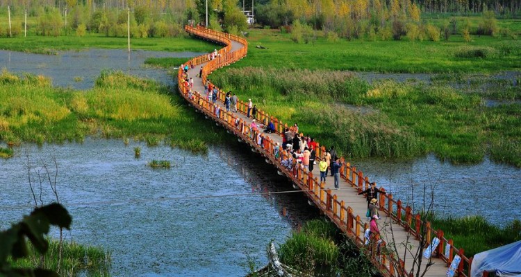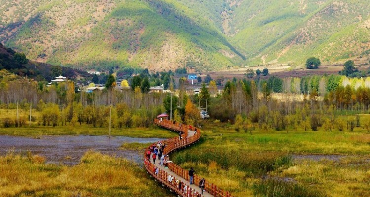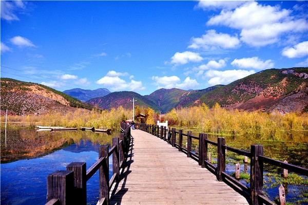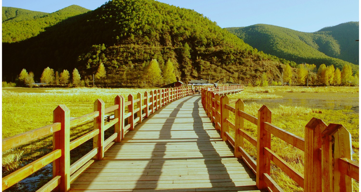 走婚桥位于泸沽湖东南水域的草海区域,是泸沽湖上唯一的座桥。桥下由于长年泥沙淤积,导致水深变浅,长有茂密的芦苇,远远望去,像一片草的海洋,故当地人称其为“草海”。走婚桥是摩梭男女约会的地方, 泸沽湖畔的摩梭人奉行“男不娶,女不嫁”的“走婚”习俗。白天,成年摩梭男女在聚会上以舞蹈、歌唱的方式对意中人表达心意。男子若对女子倾心,则在白天约好女子后,于半夜前往女子的“花楼”(指摩梭成年女性的房间)。在这里,男性称女情人为“阿夏”,女性称男情人为“阿注”。夜幕降临,走婚桥上来往着赴约的“阿注”们。走婚桥有两座,其中一座是有着近百年历史的老桥,部分木头已经腐烂或毁坏,散落在草海中,遂弃用。与老桥紧邻着的还有一座新桥,她造型优美,桥长300余米,亦由木头建造而成,桥面离水面约80厘米,两侧有木头制成的栏杆。