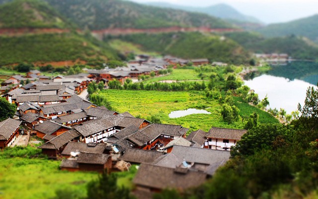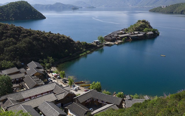 村子坐落于格姆女神山下(当地人叫狮子山——因在永宁眺望该山如静卧的狮子而得名),房舍分布在湖湾和半岛上,独特的地理位置使得里格有着与别的村落不一样的湖光山色,小小的里格半岛更为游人所喜欢。