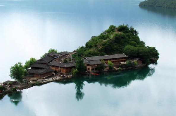 里务比岛位于泸沽湖的中南部,与 吐布半岛将泸沽湖一分为二,西北与蛇岛相望。从落水村到该岛大约半小时。岛屿的一侧为 石笋,成为天然的码头,一条蜿蜒的小道直接通往岛屿的 顶部,道路旁边有许多杜鹃花以及野樱桃树。花丛的 尽头为 藏传佛教寺院里务比寺,岛顶有一 白塔。 里务比岛与谢瓦俄岛,里格岛并称为泸沽湖蓬莱三岛。