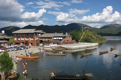 码头的所属地洛洼半岛是一个非常重要的分界线,半岛的这边是著名的草海,半岛的那边是亮海(所谓亮海就是没有看到草的水面都叫亮海)。因为如此,在这个码头看风景是很特别的,一边是青青绿草的世界,一边的清澈见底的湖水。洛洼码头也是看夕阳西下,日出东方的最佳地点了。